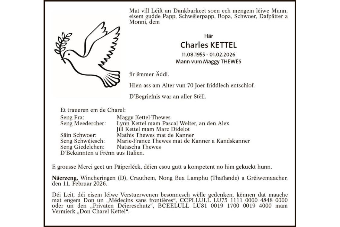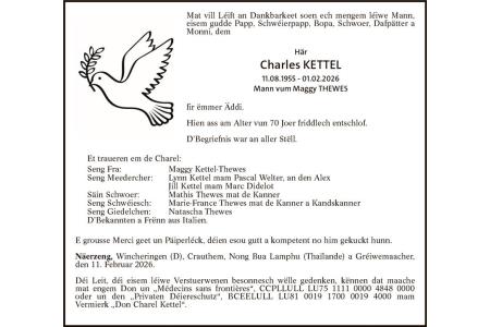 Avis mortuaire Monsieur Charel Kettel